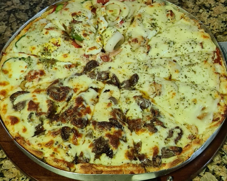 (Parmesão, mussarela, provolone, catupiry e orégano)